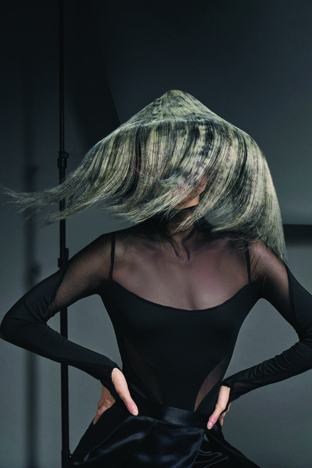 I worked on a show at London Fashion Week last year and the designer gave me a brief to make the hair match the fabric of her clothes. That was super exciting to execute! I loved the idea of textile artistry and pattern design. I was drawn to the way fabrics use repetition, contrast, and structure to create impact, and I wanted to translate that into hair. Using only blonde and black allowed me to focus on form, pattern, and texture.