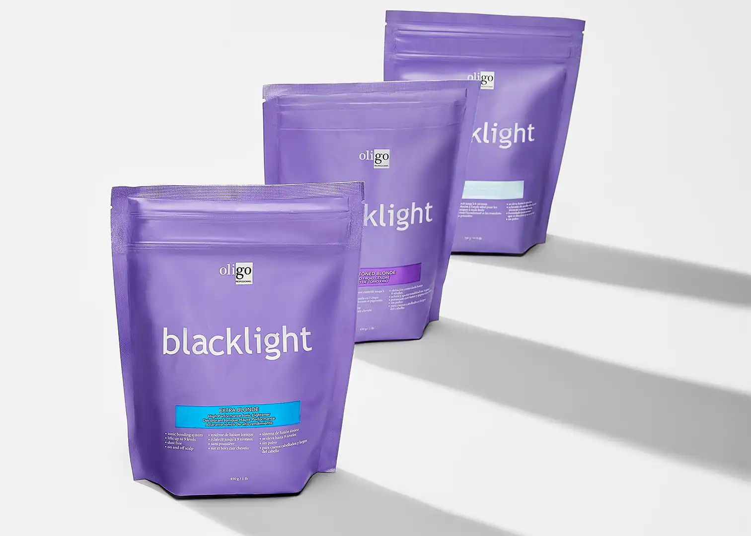 Oligo Blacklight lighteners are intermixable to achieve specific lightening results. This allows stylists to customise the lift and toning process as well as creating custom formulas for various hair types, conditions and goals. You can also adjust the speed of the lifting and overall outcome to achieve the desired result.