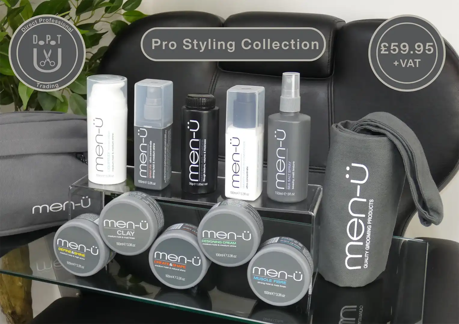 Get the Style Trial, with 30%+ off! Exclusive men-ü x HJ Pro Styling Collection is only £59.95+VAT (that's a 30%+ discount & free couriered delivery!), with full 10 product styling range including the Clay 100ml, Matt Styling Powder 30g and Sea Salt Spray 150ml.