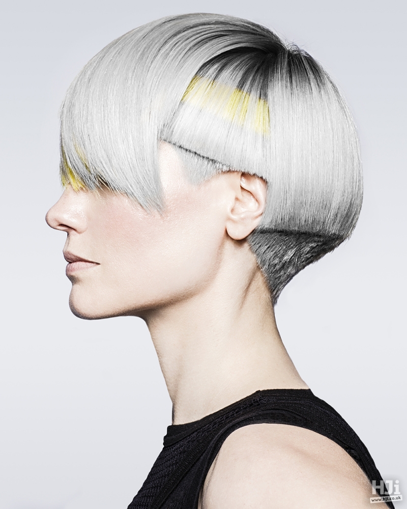 Short, spiky hair with undercut and fringe with creative colour peekaboo panels