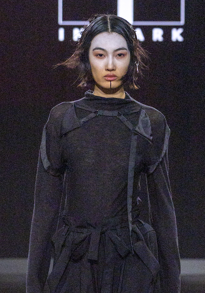 For INFDARK, the inspiration was post-apocalyptic, so the team worked with slicked-back roots through to the crown to create a clean, powerful silhouette, then introduced dry texture at the ends with irregular curls, braids or knots to add depth and interest.