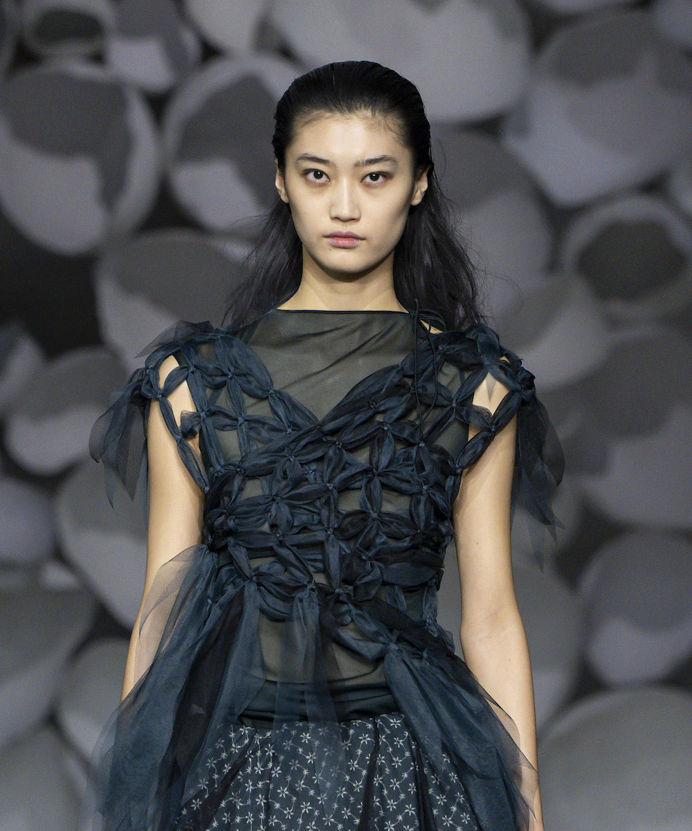 Hair at Chet Lo embraced precision – ultra-glossed glass hair inspired by Peking Opera headdresses, punctuated with sculptural feather accents. Anna predicts we’ll see a resurgence of glass-like, ultra-straight hair following seasons dominated by larger, more natural textures - a return to control, refinement and high-shine.