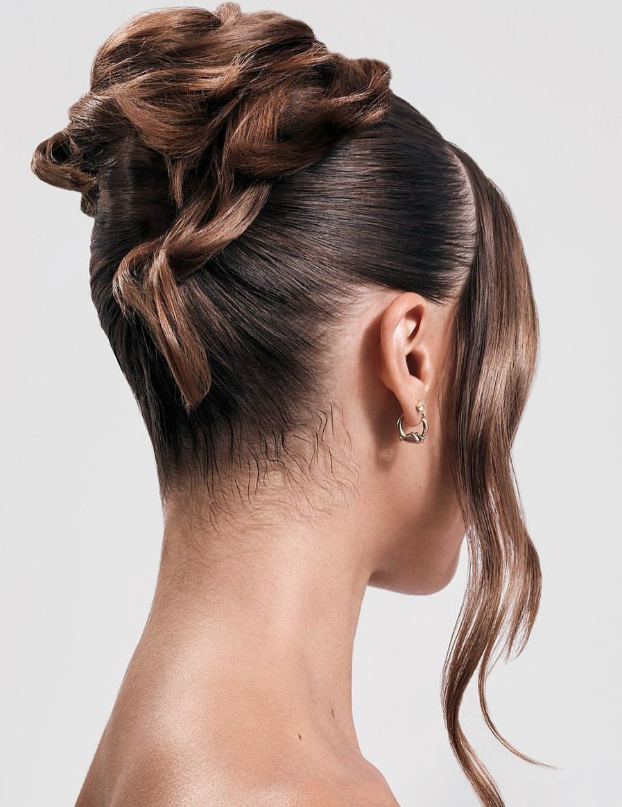 Incorporating extensions in updo work not only allows for greater creative freedom, but it also offers a practical solution for clients with finer or shorter hair. By introducing extra length and fullness, stylists can craft more intricate shapes, ensuring the final silhouette looks full, seamless, and long-lasting.