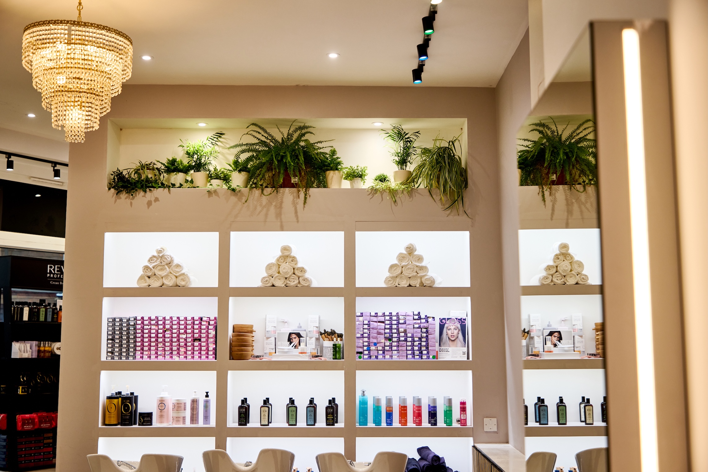 The building’s Art Deco heritage heavily influenced the final design. Polished pebble walls, rose-gold accents, parquet oak flooring and soft neutral tones create an elegant yet modern aesthetic. Lighting plays a central role, with over 100 LED spotlights designed to mimic natural daylight, ambient backlighting and three statement chandeliers. The salon also features three backwashes, a dedicated toning area with adjustable lighting and two bespoke murals inspired by Teresa’s 2024 British Hairdressing Awards, sponsored by Schwarzkopf Professional, finalist collection for Southern Hairdresser of the Year.